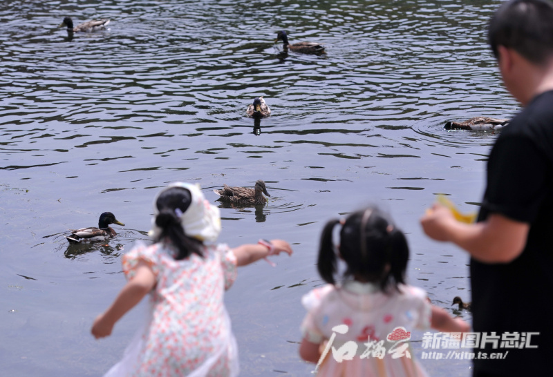 △6月15日,烏(wu) 魯木齊市民在水磨溝區水磨河濱河景觀帶喂鴨子。古爾邦節假期,許多市民選擇在家門口“微度假”模式,悠享慢時光。石榴雲(yun) /新疆日報記者 秦梅花攝