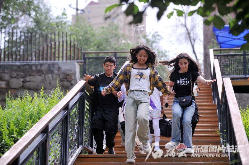 △6月15日,幾位中學生在烏(wu) 魯木齊市水磨溝區水磨河濱河景觀帶玩耍。石榴雲(yun) /新疆日報記者 秦梅花攝