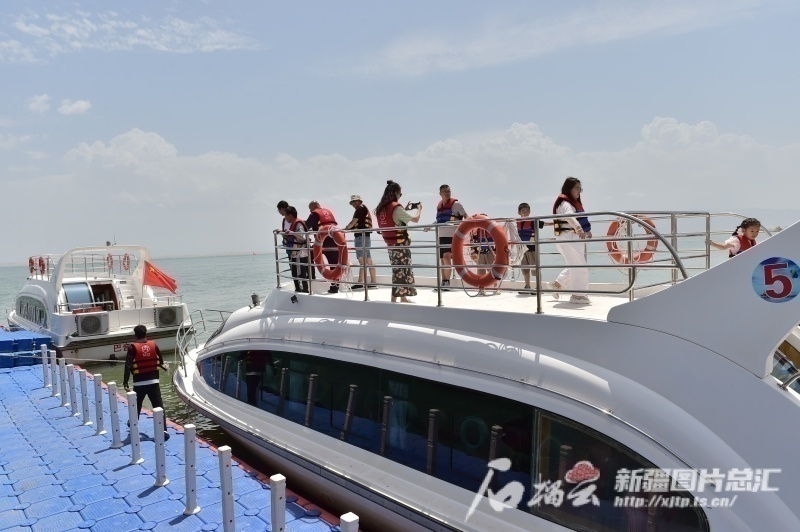 △6月15日,遊客在博斯騰湖景區乘坐遊艇遊玩。石榴雲(yun) /新疆日報記者 王立華攝