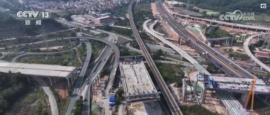 中開高速在河道縱橫交錯、高速公路密度較高的珠三角地區,橋隧比高達94%。其中,在跨越廣澳高速和廣珠城際的位置,橋梁施工遇到了最大難題,就是施工不能影響高速與(yu) 城際的正常運行。為(wei) 此,施工單位建造一座單體(ti) 轉體(ti) 橋,通過橋體(ti) 旋轉,避免施工與(yu) 正常行車形成衝(chong) 突。