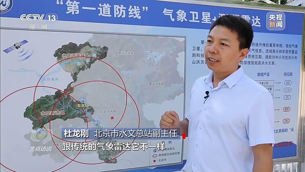北京市水文總站副主任 杜龍剛:過去傳(chuan) 統北京水務用的是245個(ge) 雨量站,今年,我們(men) 通過加密並整合氣象部門和北京市規劃和自然資源委員會(hui) 的雨量站點,達到了1900多個(ge) 。