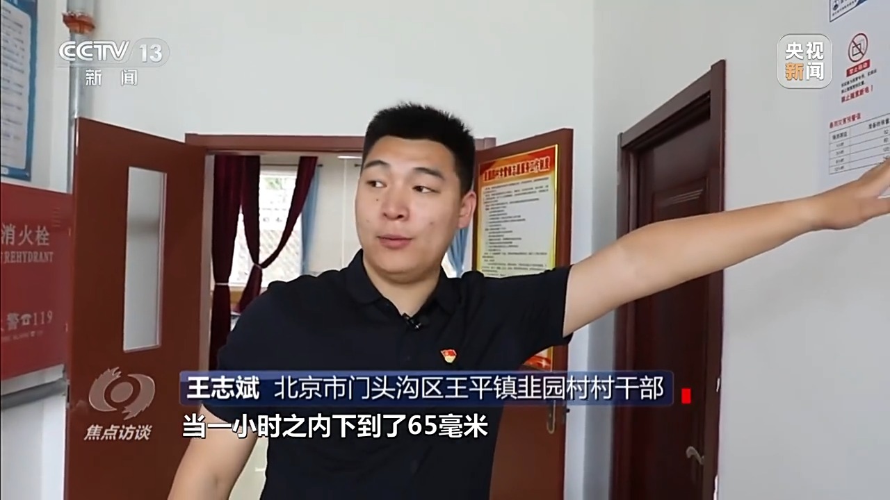 北京市門頭溝區王平鎮韭園村村幹部 王誌斌:防汛值班助手也叫入戶報警器,它和樓上的簡易雨量筒互相連接,在一小時之內(nei) 下了52毫米,它就會(hui) 觸發準備轉移的指令,當一小時之內(nei) 下了65毫米,它就會(hui) 觸發立即轉移指令,急促的語言是“立即轉移,立即轉移”。我們(men) 這次還裝了聲光一體(ti) 化報警設備,河水的流速、流量以及深度,當達到了它的預警之後,會(hui) 觸發聲音和燈光報警,提示河道基本上已經達到洪水級別了。