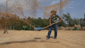 在“晉南糧倉(cang) ”山西省運城市,小麥已進入搶曬關(guan) 鍵時期。