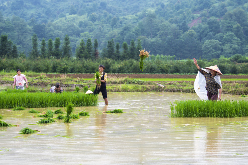 6月10日,湖南省常寧市勝橋鎮農(nong) 民在起秧苗。新華社發(周秀魚春 攝)