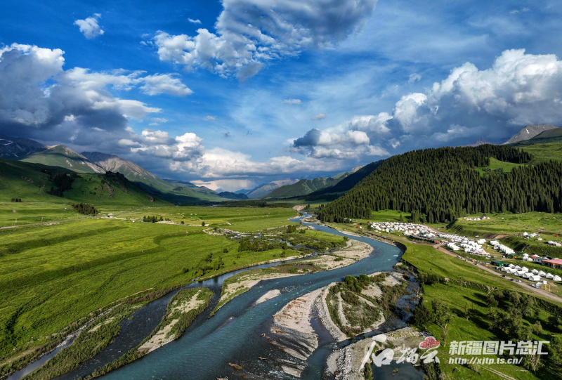 6月17日,藍天白雲(yun) 下的尼勒克縣唐布拉草原。張慶華攝