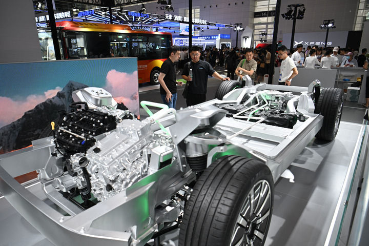 這是在博覽會(hui) 現場拍攝的一款智能網聯汽車平台架構(6月20日攝)。新華社記者 孫凡越 攝