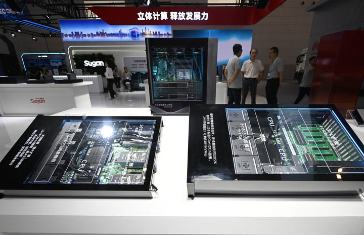 這是6月20日在博覽會(hui) 上拍攝的中科曙光展區的一台人工智能服務器。新華社記者 趙子碩 攝