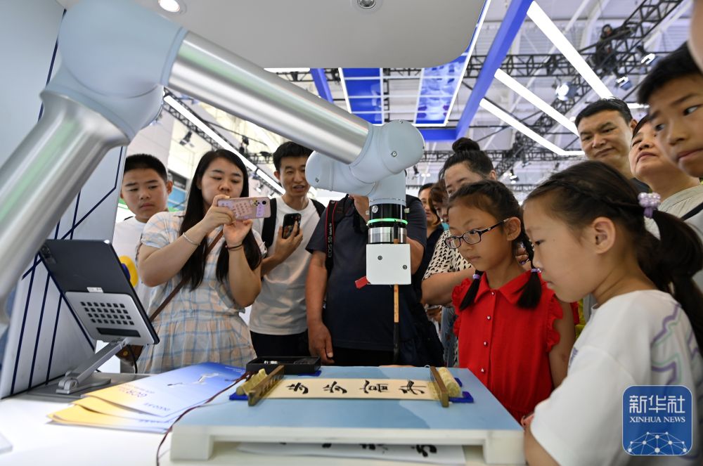 6月22日,觀眾(zhong) 在博覽會(hui) 上觀看機器人寫(xie) 字。新華社記者 李然 攝