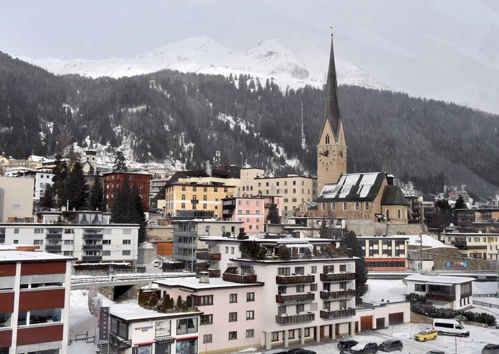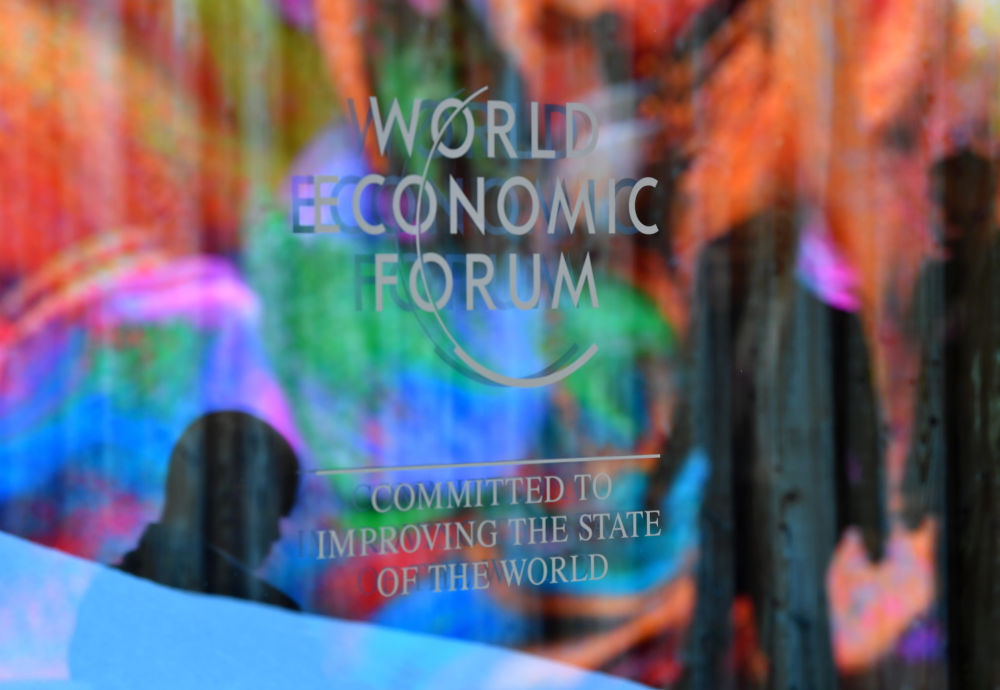 ↑在瑞士達沃斯拍攝的世界經濟論壇標識。
