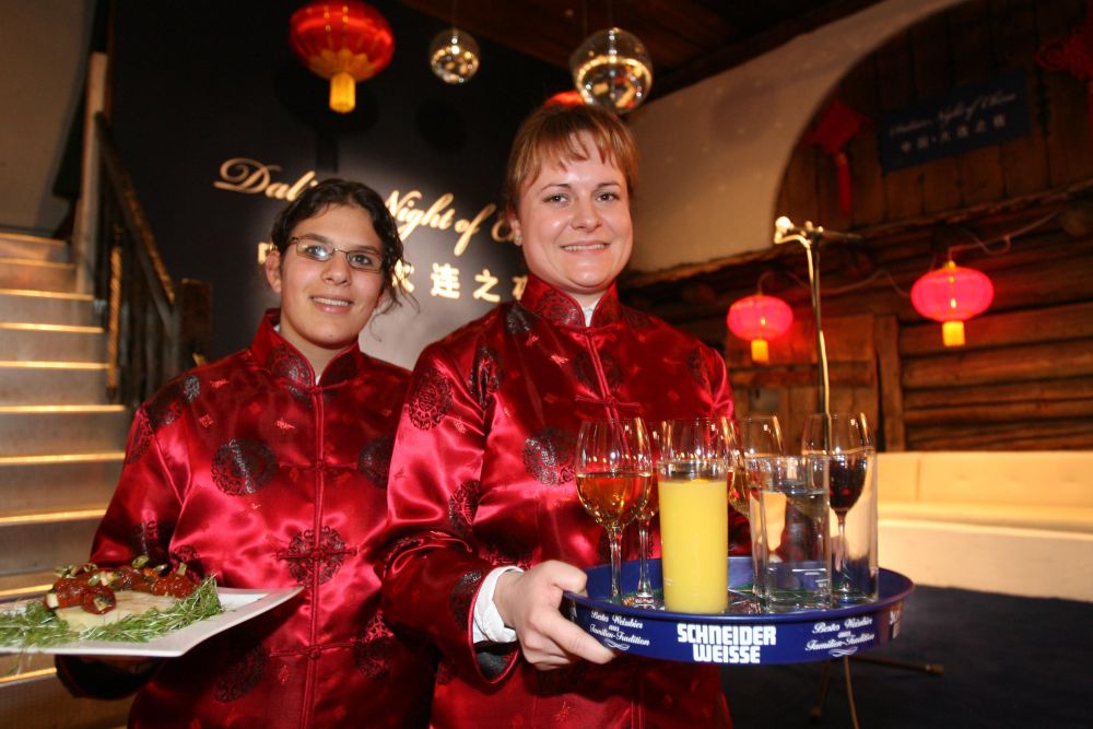 2007年1月25日,在瑞士達沃斯舉(ju) 行的“中國大連之夜”上,當地女服務員穿上了中國傳(chuan) 統服裝。