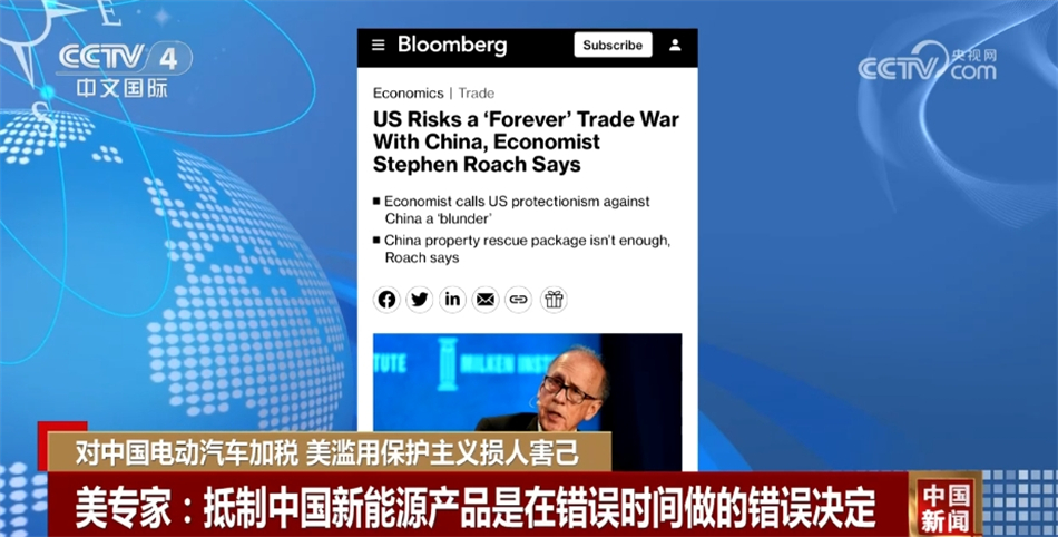 美國耶魯大學高級研究員斯蒂芬·羅奇稱:“我認為(wei) 這是美國選舉(ju) 年由政治驅動的巨大戰略錯誤,對中國這樣一個(ge) 在生產(chan) 零碳新能源產(chan) 品方麵具有比較優(you) 勢的國家,采取貿易保護主義(yi) 立場,在我看來,這可能是一個(ge) 曆史性的錯誤。零碳替代能源產(chan) 品是受到氣候變化影響的世界所迫切需要的,這恰恰是在錯誤的時間做了錯誤的事。”