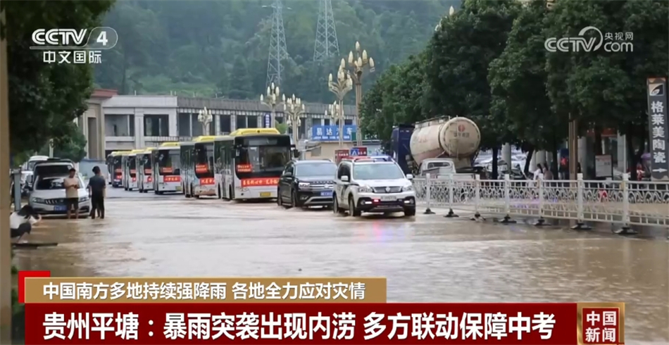 受強降雨的影響,23日,貴州平塘縣低窪路段出現內(nei) 澇。恰逢當地中考最後一天,為(wei) 保障學生順利參考,平塘縣第一時間啟動應急預案,引導接送考生車輛安全行駛。