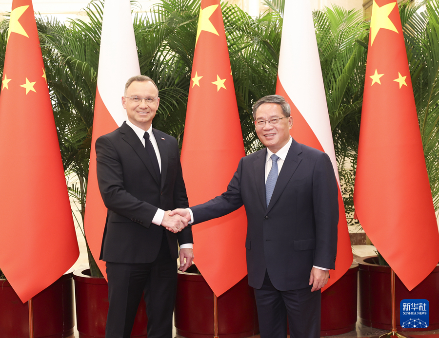 6月24日上午,國務院總理李強在北京人民大會(hui) 堂會(hui) 見來華進行國事訪問的波蘭(lan) 總統杜達。新華社記者 龐興(xing) 雷 攝