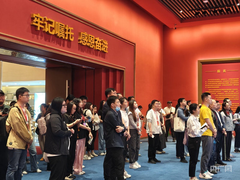 采訪團在內(nei) 蒙古展覽館采訪(央廣網記者 劉欣榮 攝)