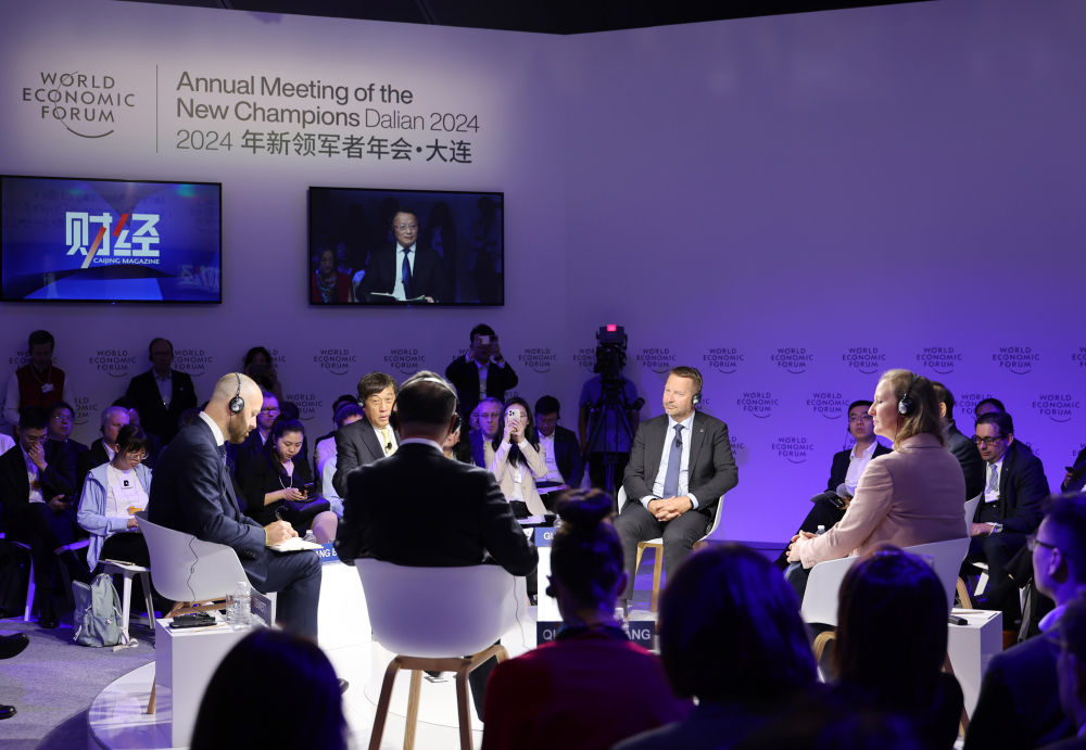 6月26日,在夏季達沃斯論壇主會(hui) 場大連國際會(hui) 議中心,嘉賓參與(yu) 互動討論。新華社記者李鋼攝