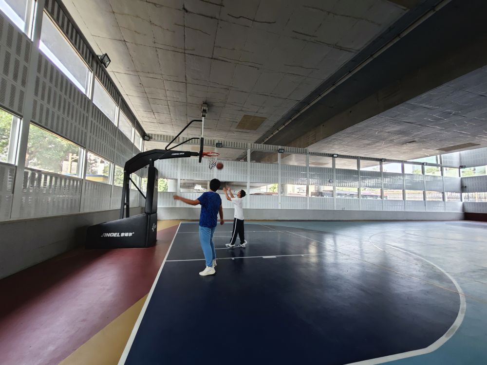 中學生在北京西城區天寧寺橋下空間籃球場運動。 新華社記者陳旭 攝
