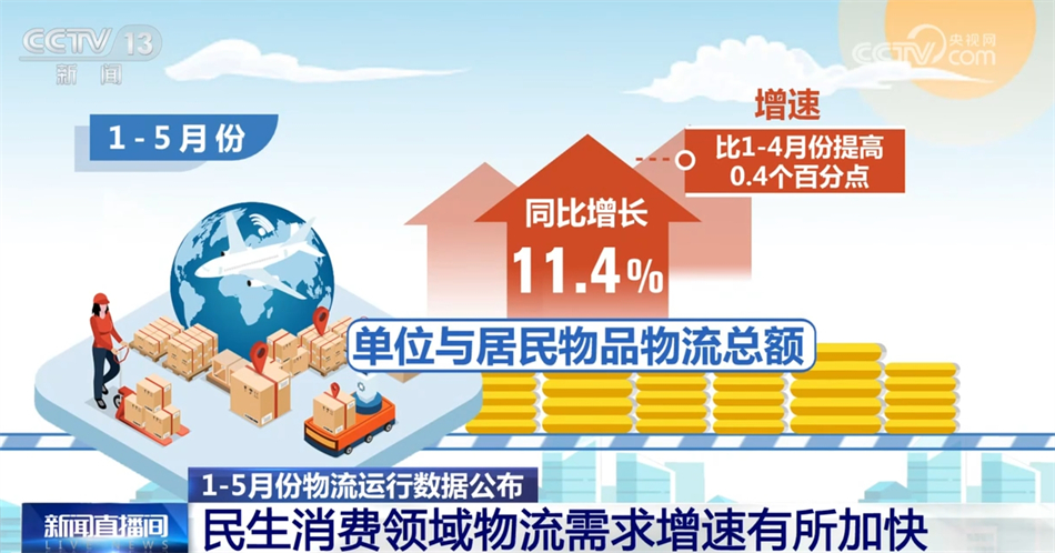 中國物流信息中心主任劉宇航表示,從(cong) 1—5月我國社會(hui) 物流運行情況來看,總體(ti) 還是保持穩中向好。從(cong) 消費的情況來看,5月份以來整個(ge) 消費活力比較強,消費增速比較明顯。