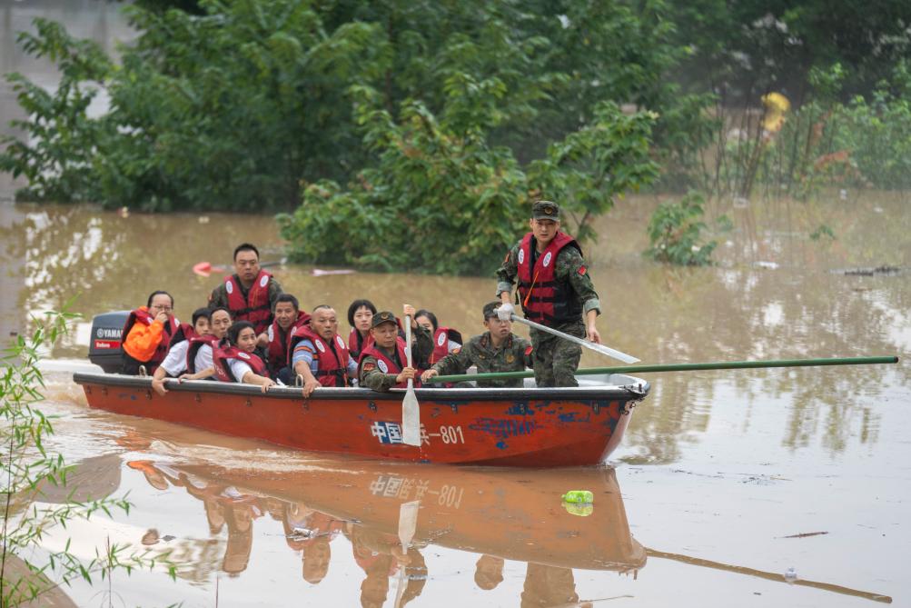 這是7月1日在平江縣天嶽街道大西村拍攝的被困群眾(zhong) 轉移現場。新華社記者陳思汗攝