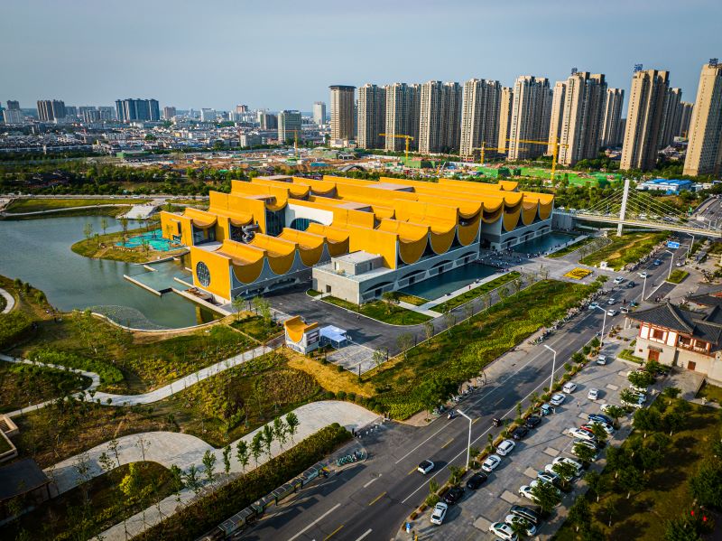 盛夏時節,駐足洛河(大運河洛陽段)之畔,能望見別致的金色屋頂在陽光下熠熠生輝,好似連綿起伏的風吹船帆。這裏,正是洛陽隋唐大運河文化博物館。