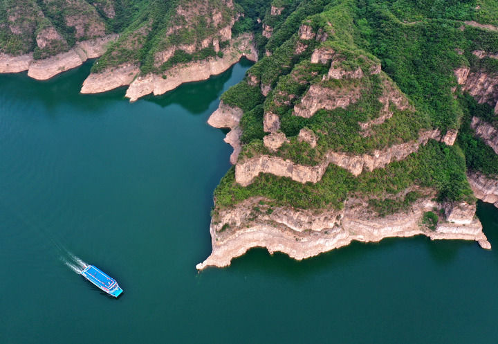 這是在河南省濟源市拍攝的黃河三峽景色(2024年5月28日攝,無人機照片)。新華社記者 李安 攝