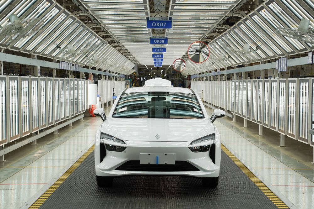 在位於(yu) 江西省南昌市經開區的江鈴集團新能源汽車有限公司生產(chan) 基地拍攝的汽車生產(chan) 流水線(2023年7月18日攝)。新華社記者 周密 攝