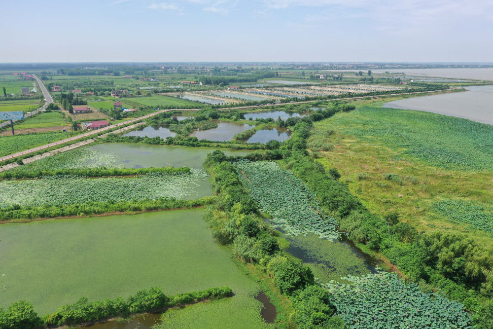 這是在湖南省益陽市大通湖區河壩鎮拍攝的由中國科學院設計的大通湖流域農(nong) 業(ye) 麵源汙水末端強化處理設施(2023年7月10日攝,無人機照片)。大通湖地處洞庭湖腹地,被稱作“洞庭之心”。新華社記者 薛宇舸 攝