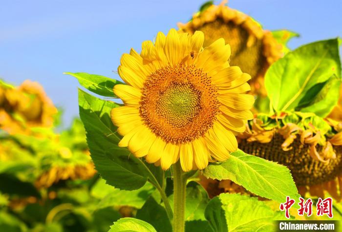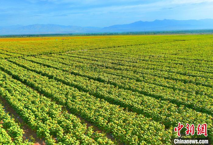 7月2日,走進新疆鐵門關(guan) 市二十一團,一眼望不到邊的向日葵正大麵積綻放,構成一幅美麗(li) 的壯觀畫卷。白克斌 攝