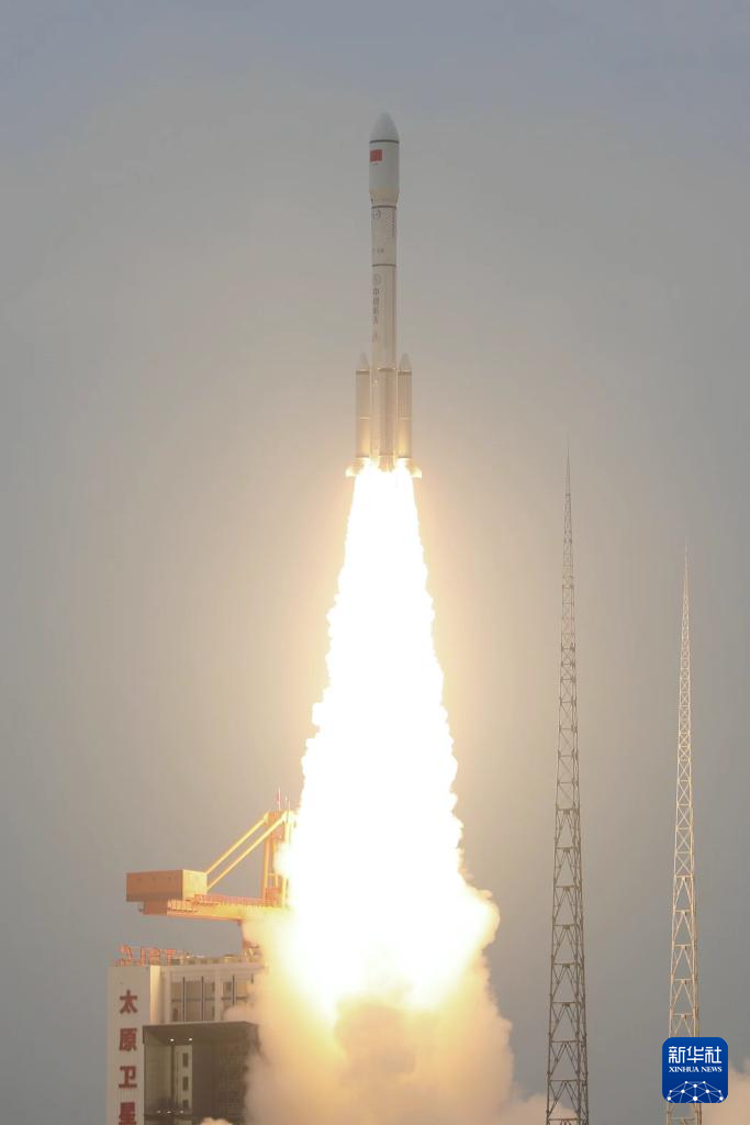 7月5日6時49分,我國在太原衛星發射中心使用長征六號改運載火箭,成功將天繪五號02組衛星發射升空,衛星順利進入預定軌道,發射任務獲得圓滿成功。新華社發(鄭斌 攝)