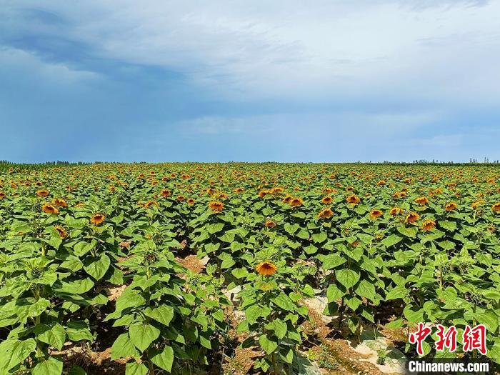 記者日前走進素有“中國食葵之鄉(xiang) ”的第十師北屯市農(nong) 田,葵花綻放,長勢良好,預計又是一個(ge) 豐(feng) 收年。