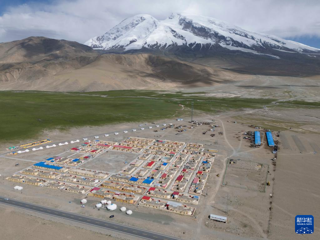 塔西巴伊家住新疆慕士塔格峰腳下的阿克陶縣布倫(lun) 口鄉(xiang) 蘇巴什村三小隊(7月2日攝,無人機照片)。新華社記者 胡虎虎 攝
