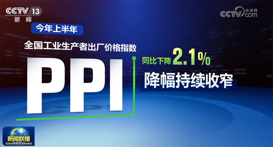 上半年,全國工業(ye) 生產(chan) 者出廠價(jia) 格指數PPI降幅持續收窄,同比下降2.1%。