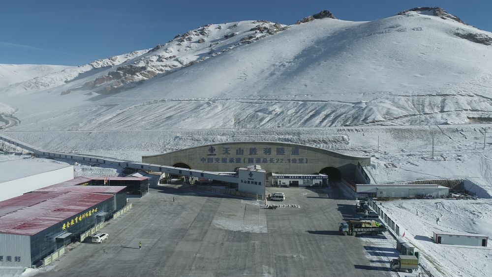 這是世界上在建的最長高速公路隧道——新疆天山勝利隧道出口端(2024年4月23日攝)。新華社發(孟根桑 攝)