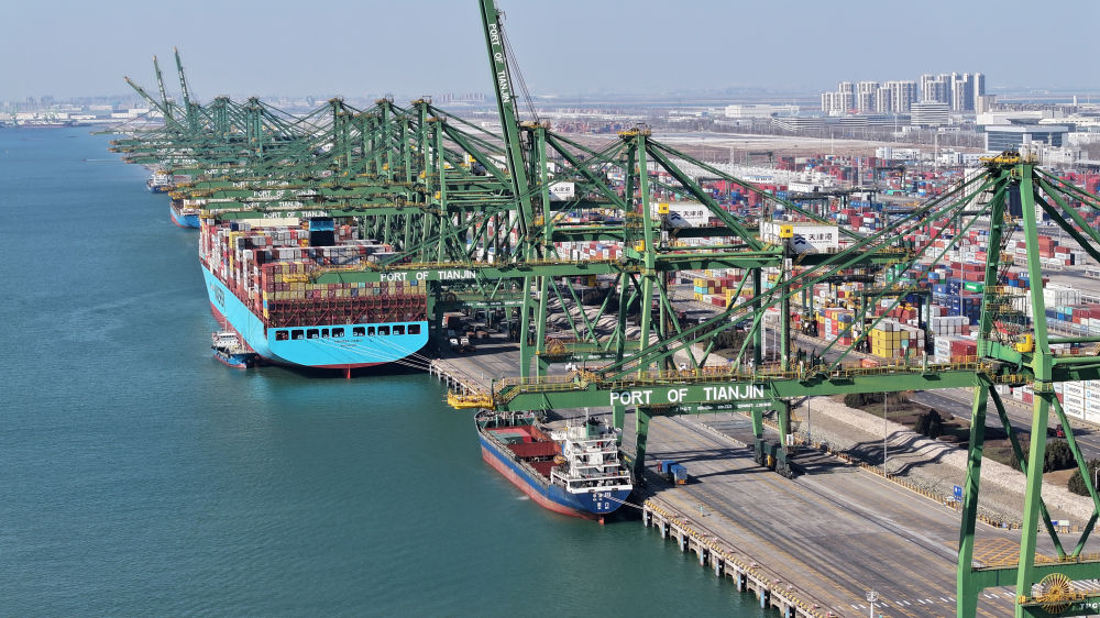 圖為(wei) 2月2日拍攝的天津港太平洋國際集裝箱碼頭(無人機照片)。新華社記者 趙子碩 攝