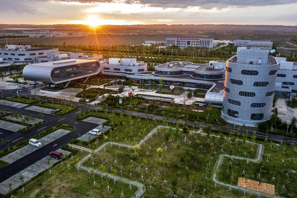 從(cong) 空中俯瞰克拉瑪依雲(yun) 計算產(chan) 業(ye) 園區(2021年8月13日攝)。新華社發(閔勇 攝)
