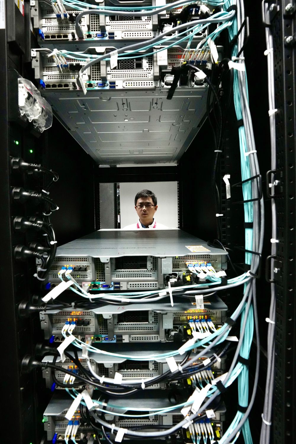 2月27日,克拉瑪依雲(yun) 計算產(chan) 業(ye) 園區華為(wei) 雲(yun) 服務數據中心,技術人員正在巡查。新華社發(崔文娟 攝)