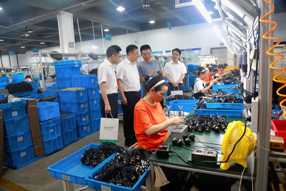 7月12日,在位於(yu) 浙江溫嶺的愛科賽智能科技公司,農(nong) 行溫嶺支行工作人員開展金融問需服務。新華社發(程蘊 攝)