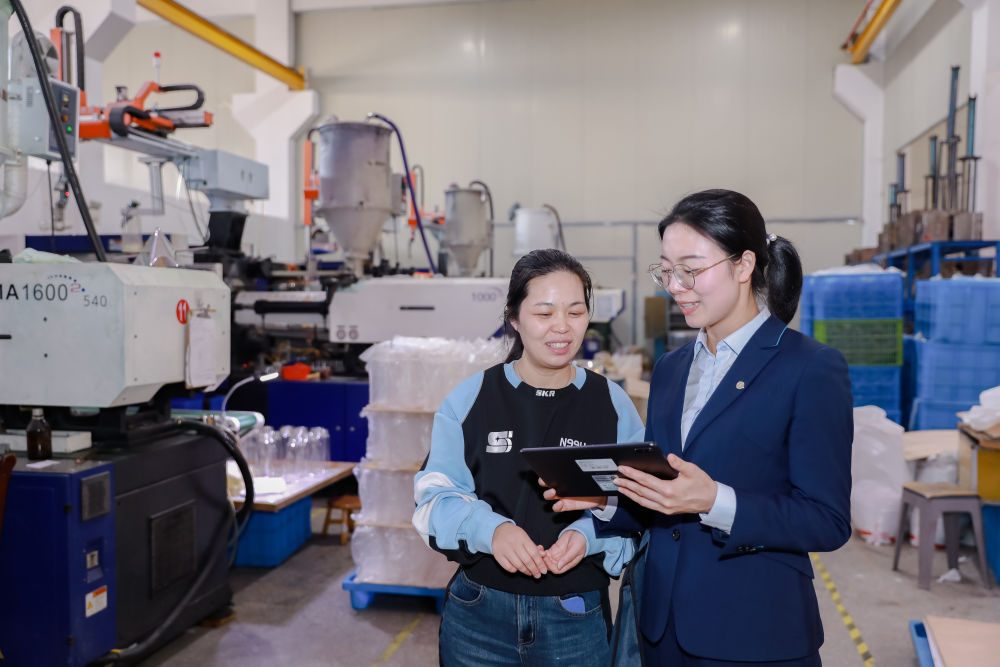 2023年11月,台州銀行信貸經理(右)在黃岩走訪小微企業(ye) 。新華社發