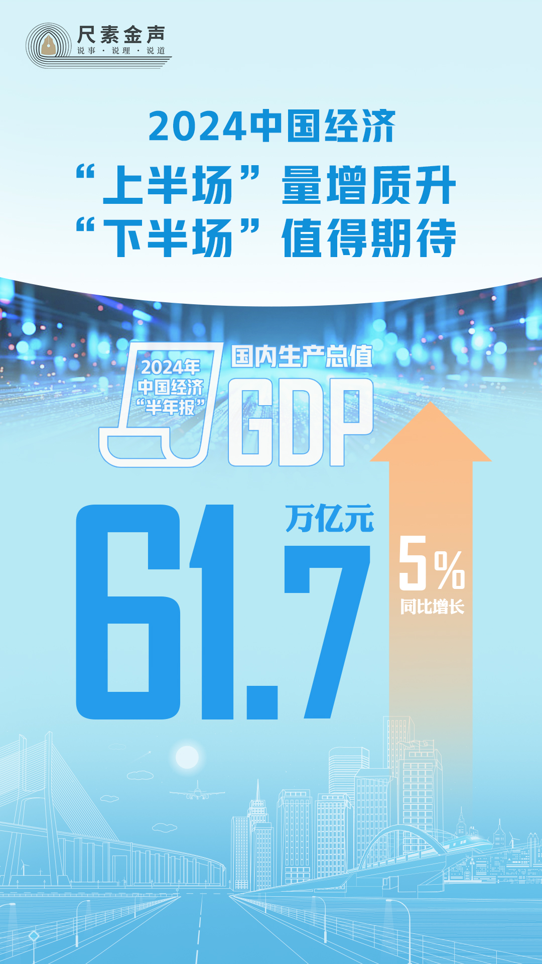 正在北京舉(ju) 行的黨(dang) 的二十屆三中全會(hui) ,將重點研究進一步全麵深化改革、推進中國式現代化。改革的“時代新篇”萬(wan) 眾(zhong) 矚目,中國的發展也令人高度關(guan) 注——同日,國家統計局發布2024年中國經濟“半年報”:國內(nei) 生產(chan) 總值(GDP)61.7萬(wan) 億(yi) 元,同比增長5%。結合二季度國內(nei) 外形勢,預計上半年中國經濟增速仍將保持領先,仍是世界經濟增長的重要引擎和穩定力量。