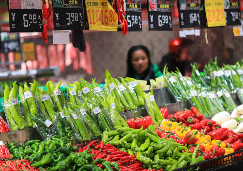 3月9日,消費者在貴州省從(cong) 江縣一家超市選購蔬菜。新華社發(羅京來攝)