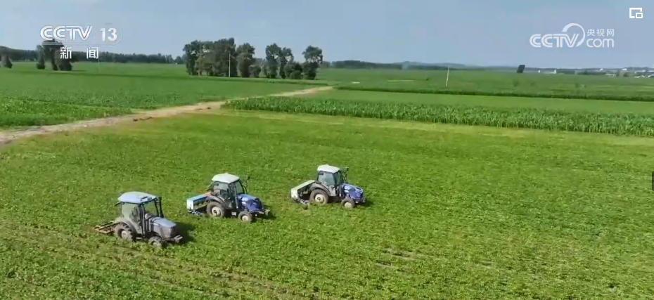 在黑龍江雙鴨山市,受前期低溫多雨天氣影響,大豆生長期推遲。在集賢縣一處萬(wan) 畝(mu) 大豆種植地塊,植保無人機正在按照設定的作業(ye) 路線施撒有機肥,為(wei) 大豆收獲提質增產(chan) 。同時,當地還組織中耕機械適時對大豆作物進行鬆土作業(ye) ,增加土壤的透氣性,提高土壤養(yang) 分的利用率。