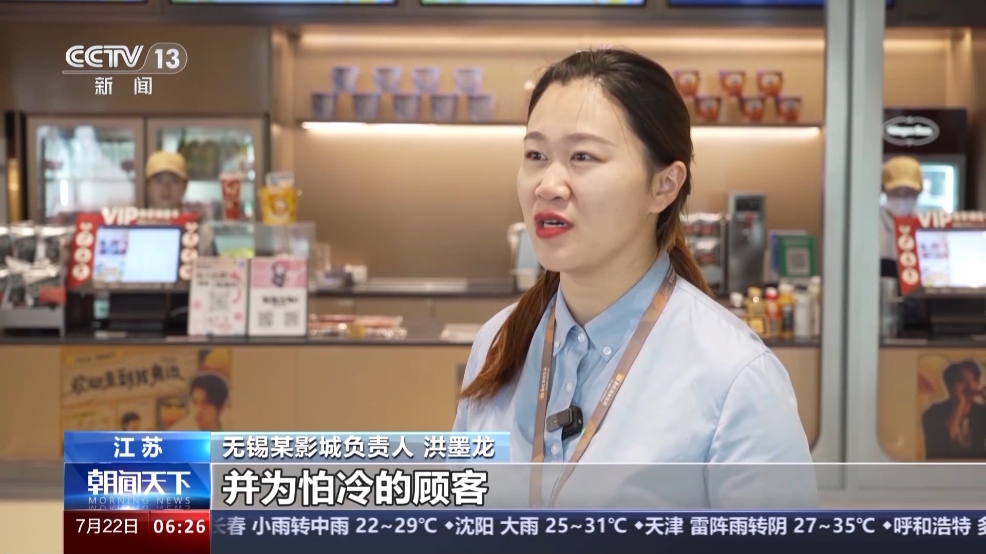 無錫某影城負責人 洪墨龍:首先我們(men) 保證影廳的溫度適宜,並為(wei) 怕冷的顧客提供免費幹淨的毛毯。我們(men) 還會(hui) 通過現場的陳列布置,打造主題觀影氛圍,讓觀眾(zhong) 在觀影過程中有更多的參與(yu) 感和互動體(ti) 驗。