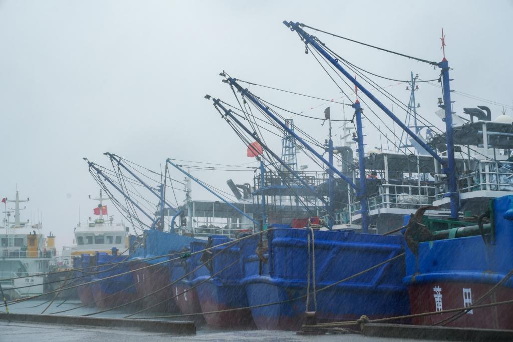 7月25日下午,在位於(yu) 福建省莆田市秀嶼區埭頭鎮的石城國家一級漁港,今年第3號台風“格美”的外圍風圈已經襲來。七八級的陣風夾雜著豆大的雨點打在臉上,裹挾著三四米高的海浪拍擊著護堤,激起白茫茫一片水花。漁港裏,100多艘大小船舶已在24日中午12點前回港,呈“半月環抱”狀整齊停泊,船舶間已用纜繩加固。