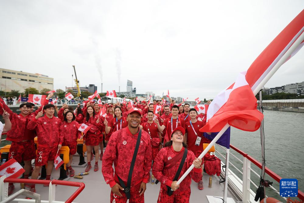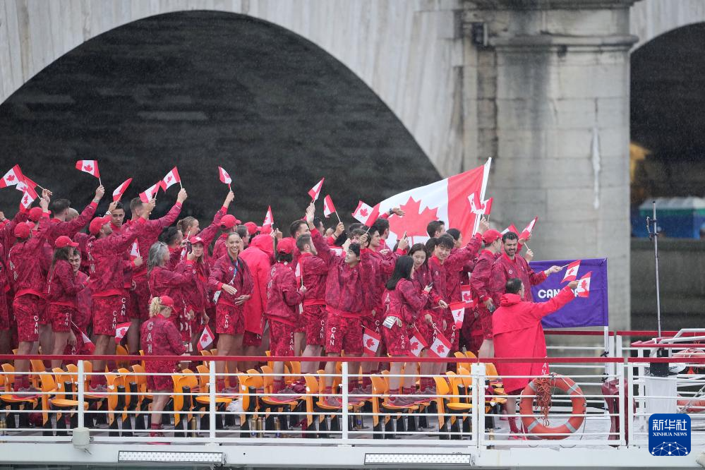 7月26日,加拿大體(ti) 育代表團(前)在開幕式上。新華社記者 任正來 攝