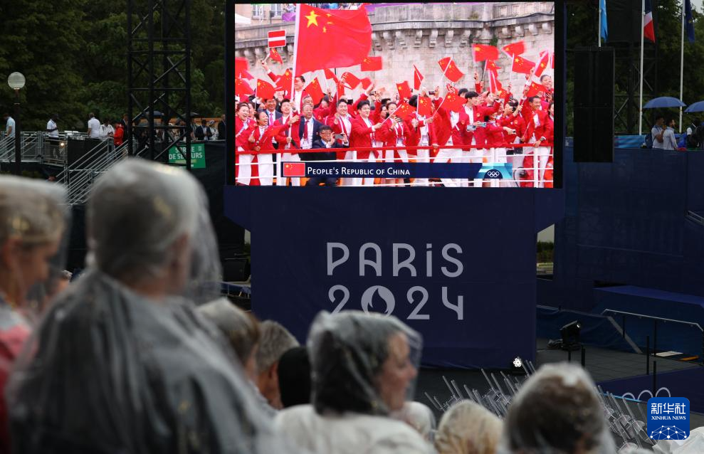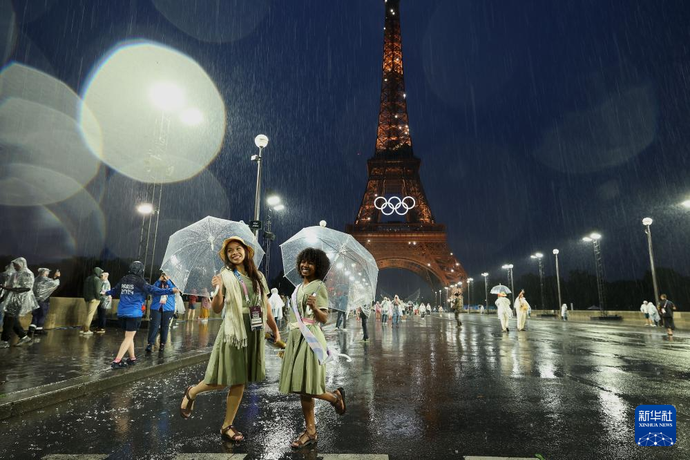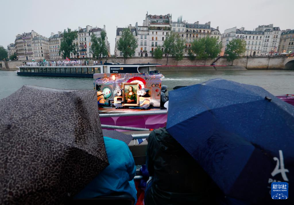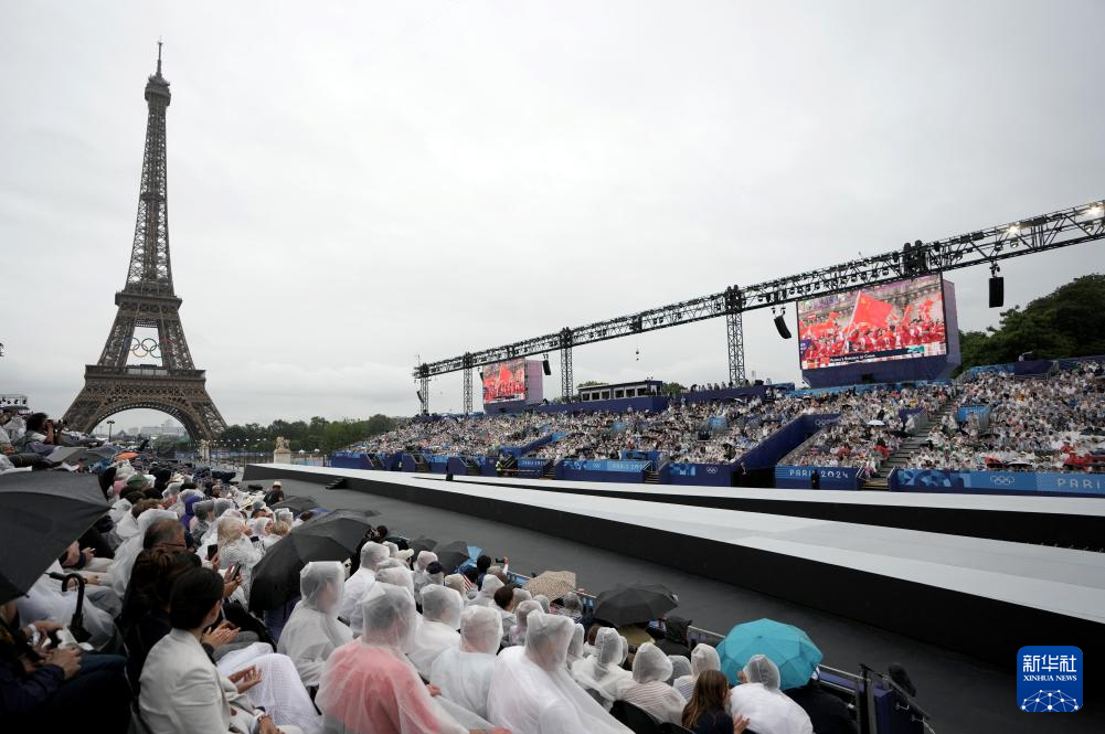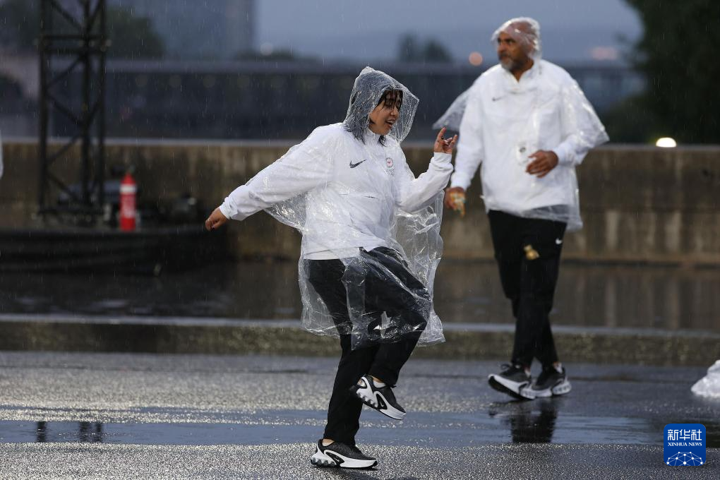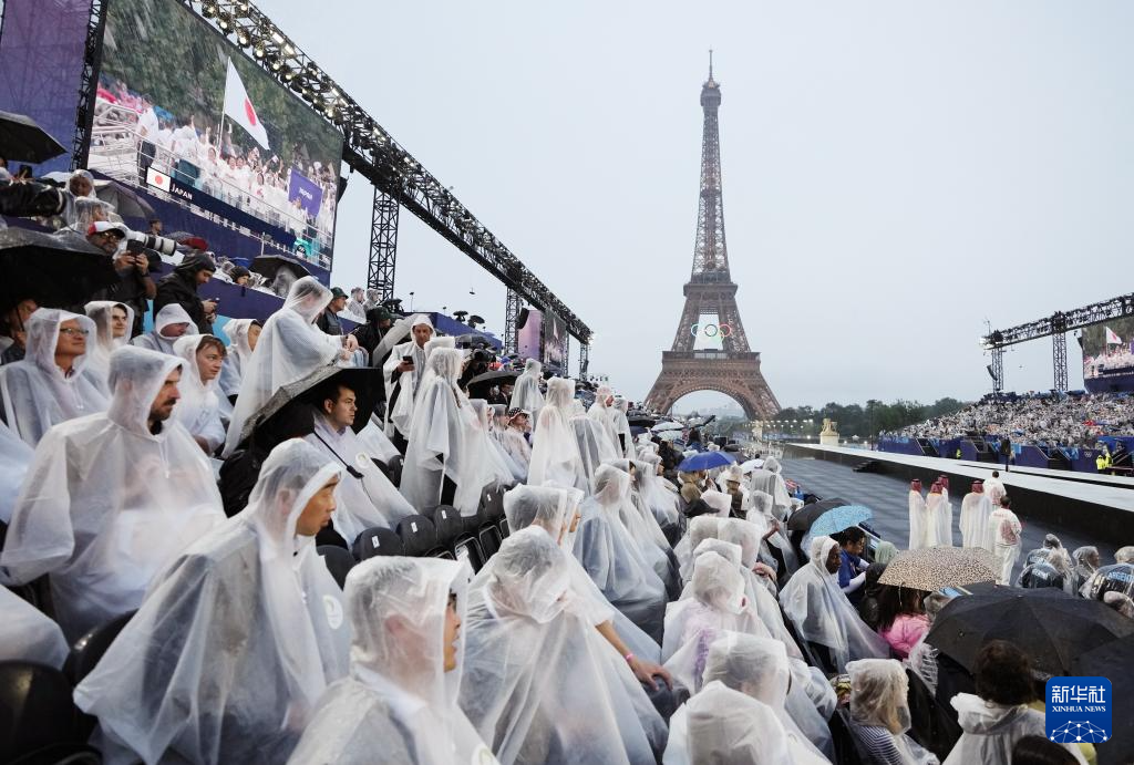 7月26日,觀眾(zhong) 在雨中觀看開幕式。新華社發(POOL照片/克洛達赫·基爾科因)