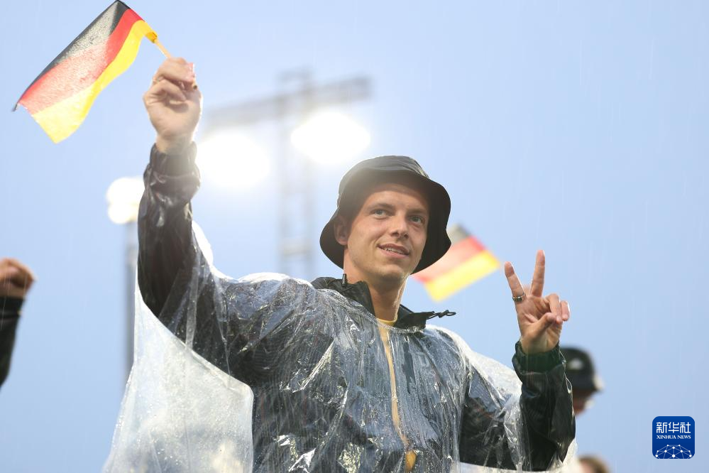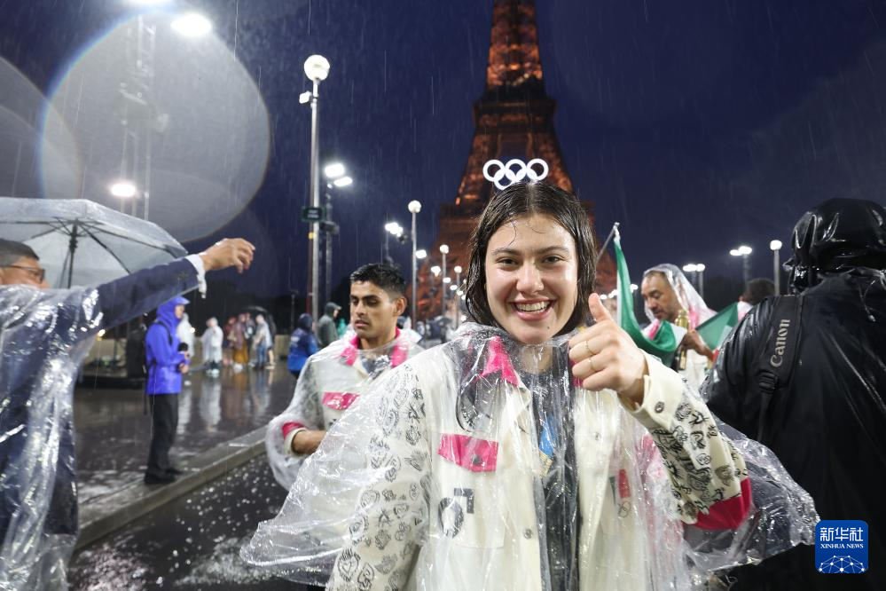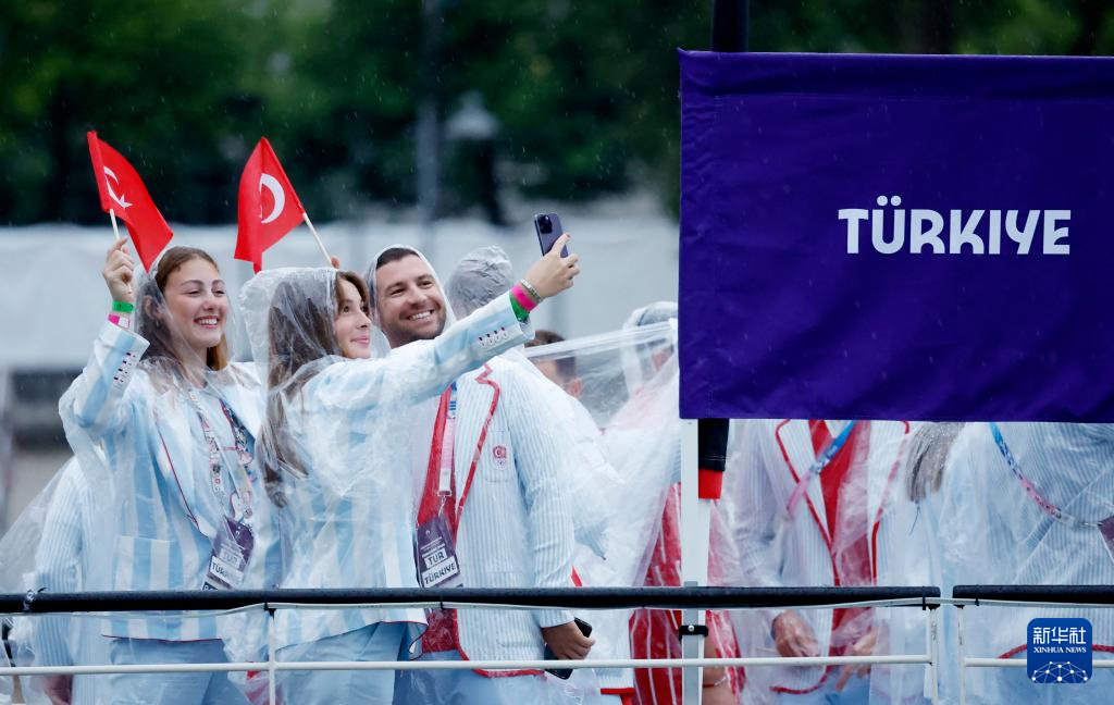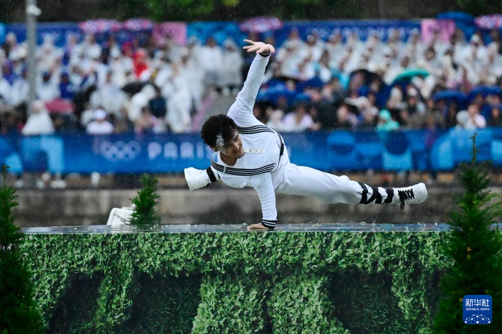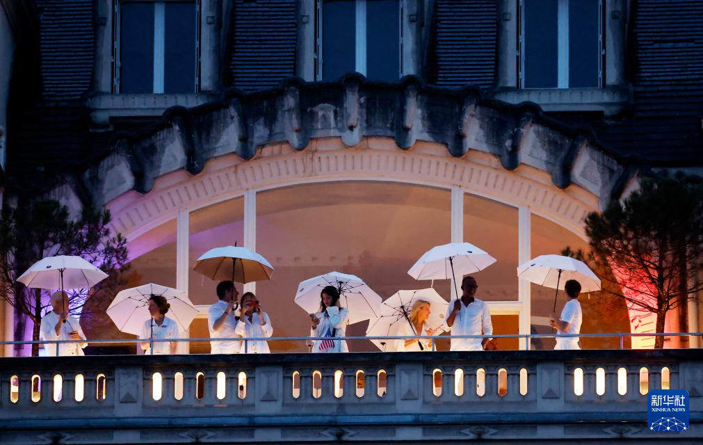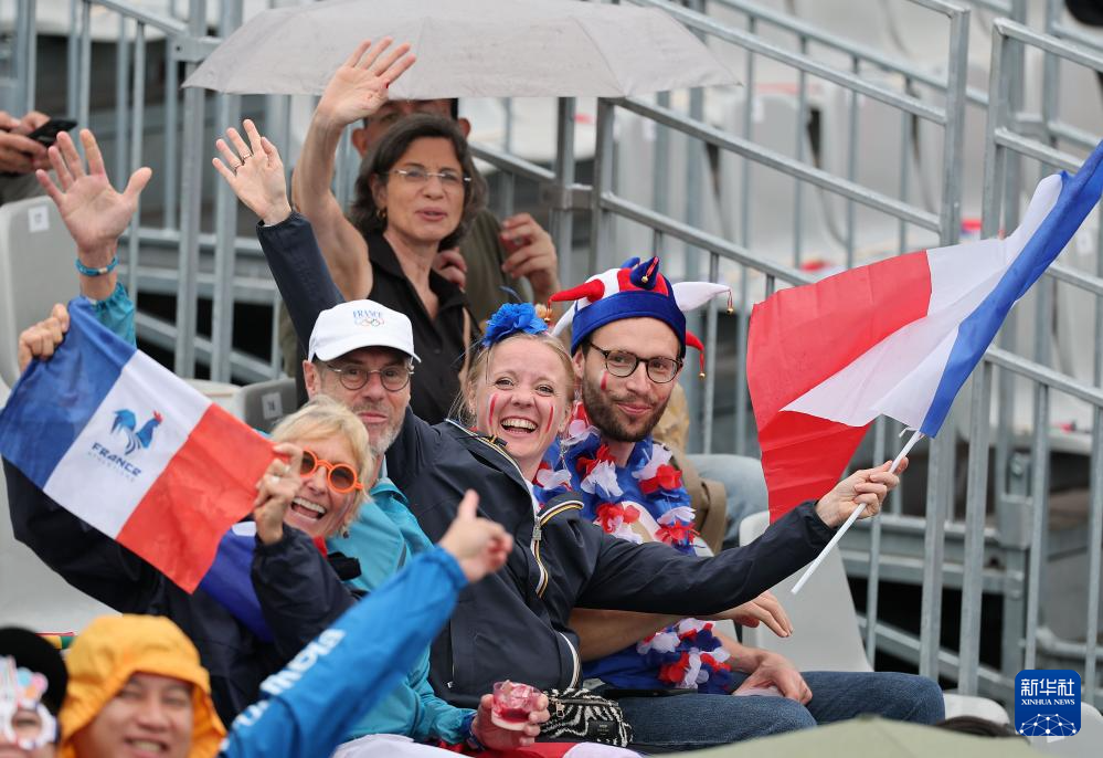 7月26日,觀眾(zhong) 在雨中觀看開幕式。新華社發(POOL照片/克洛達赫·基爾科因)