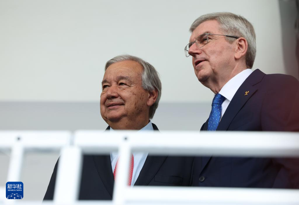 7月26日,國際奧委會(hui) 主席巴赫(右)與(yu) 聯合國秘書(shu) 長古特雷斯出席開幕式。新華社記者 高靜 攝pagebreak