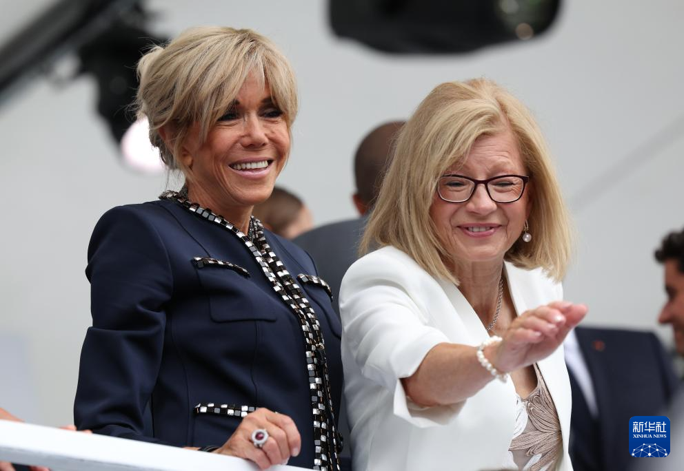 7月26日,法國總統馬克龍夫人布麗(li) 吉特(左)在開幕式現場。新華社記者 高靜 攝pagebreak
