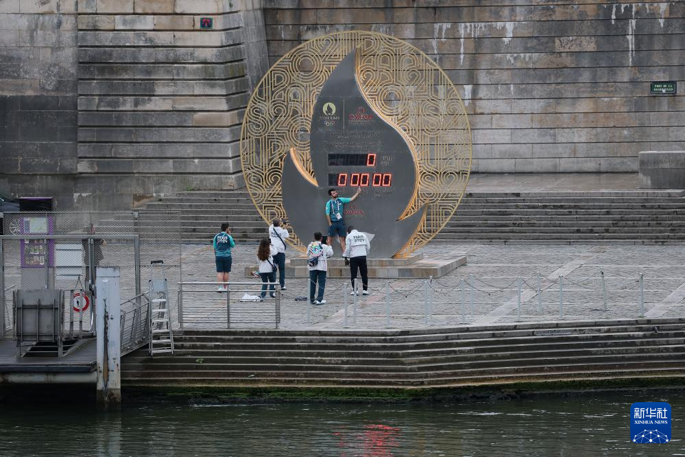 7月26日,誌願者與(yu) 奧運倒計時牌合影。新華社記者 李明 攝