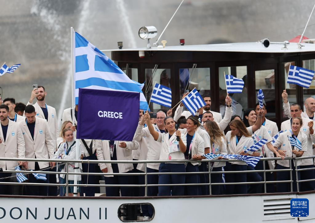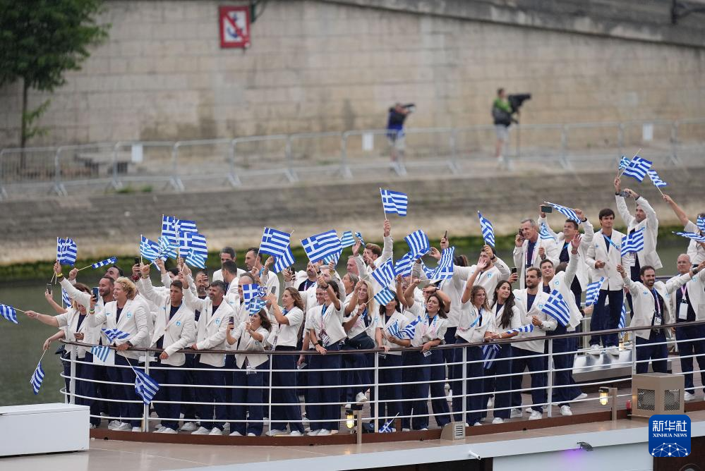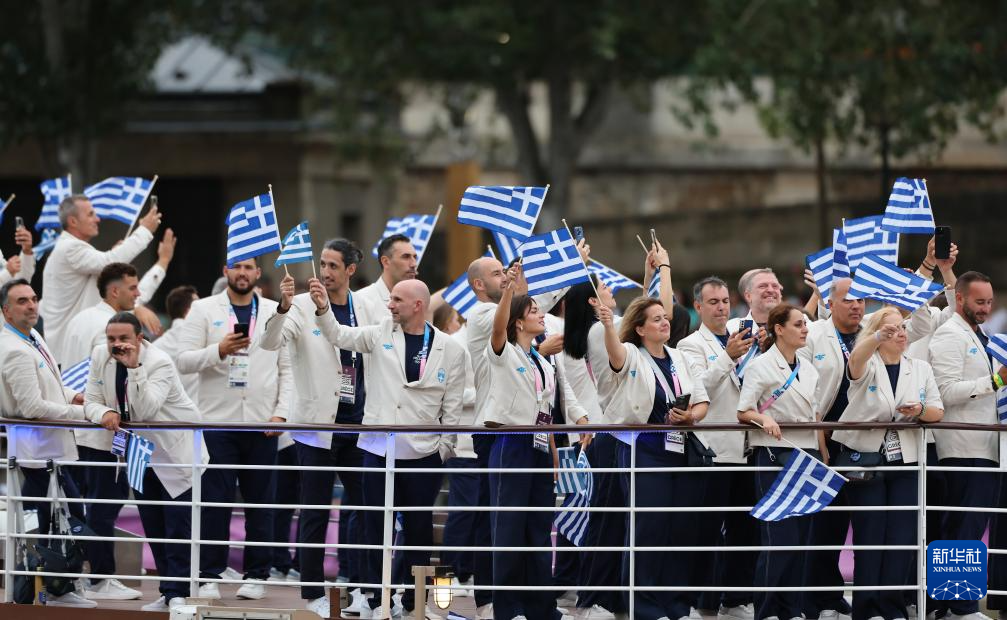 7月26日,希臘體(ti) 育代表團在開幕式上。新華社記者 萬(wan) 象 攝