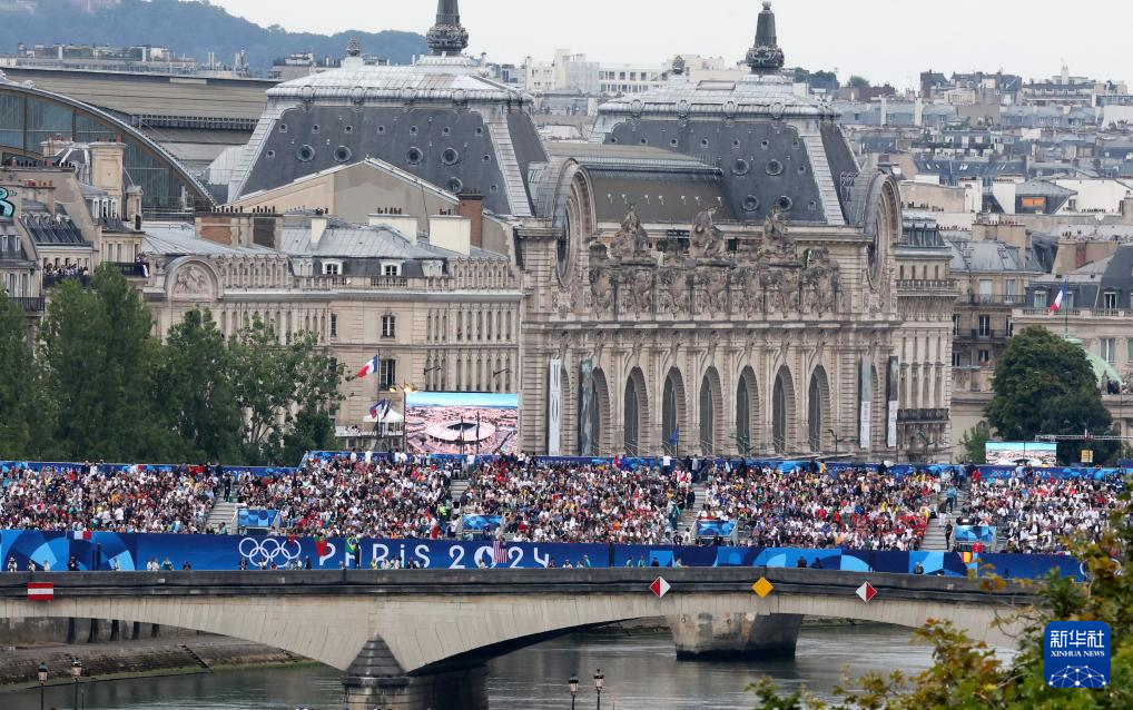 7月26日,觀眾(zhong) 在塞納河畔觀看開幕式。新華社記者 費茂華 攝